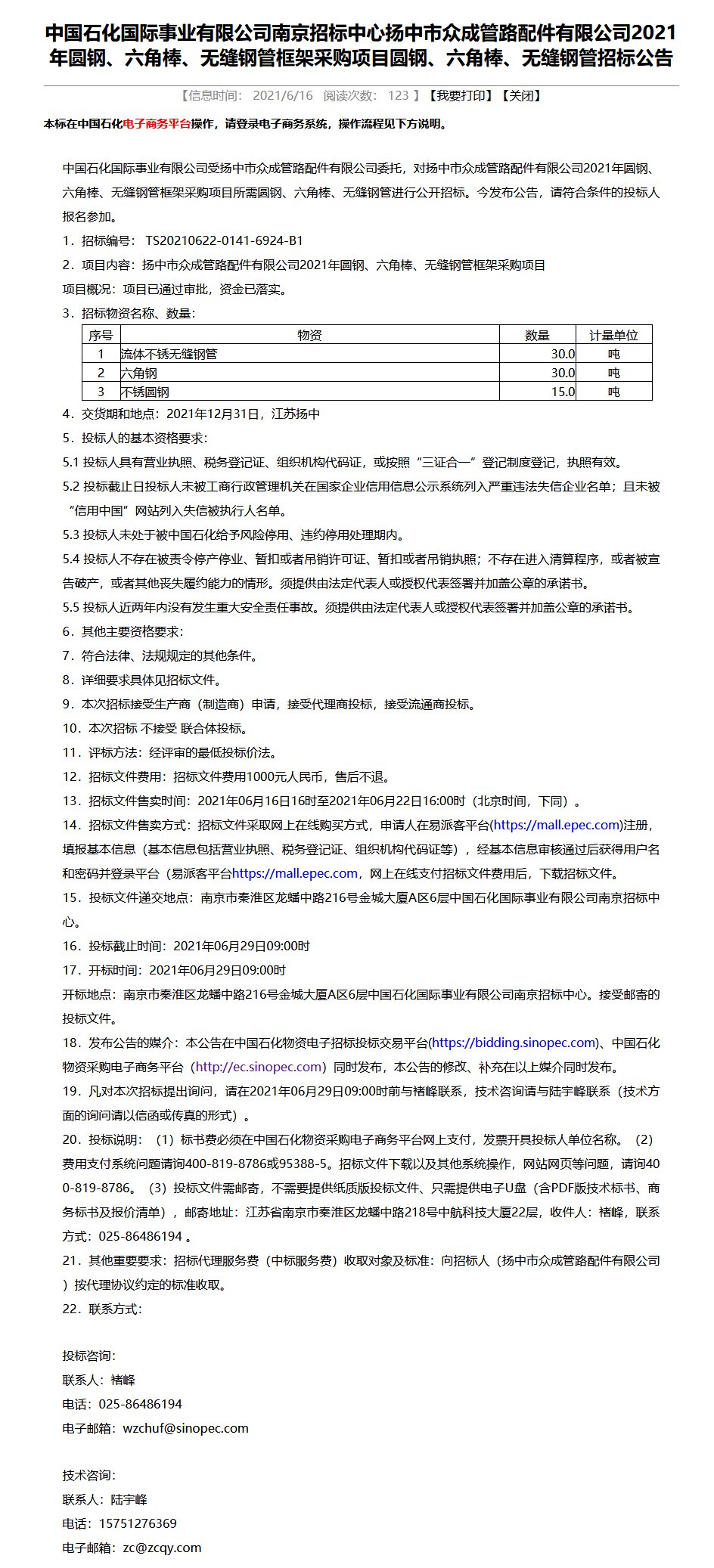 本公告在中國采購與招標網、中國石化物資電子招標投標交易平臺(http://bidding.sinopec.com)、中國石化物資采購電子商務平臺(http://ec.sinopec.com)同時發布,本公告的修改、補充在以上媒介同時發布。