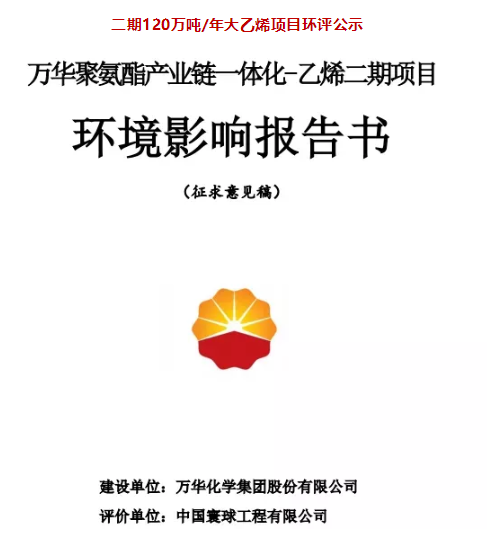 11月9日,《萬華化學集團股份有限公司聚氨酯產業鏈一體化-乙烯二期項目環境影響報告書》征求意見稿已形成,根據要求進行信息公開,并征求意見。