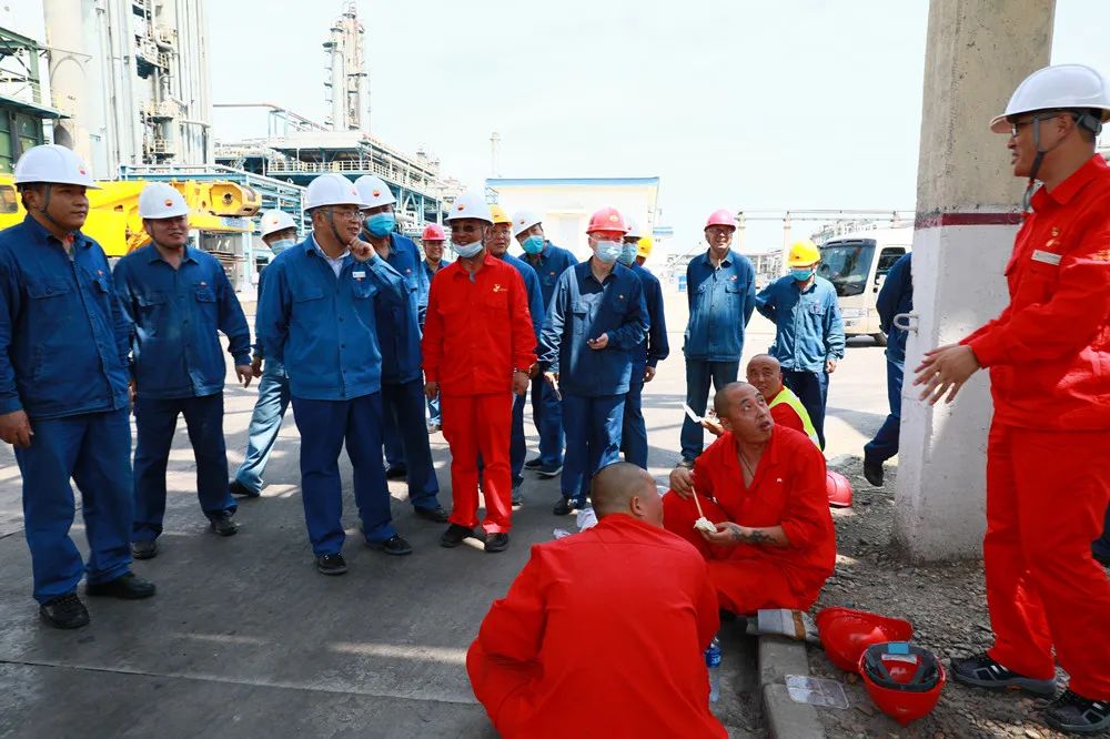 7月24日,星期六,室外氣溫高達31度,正值今年公司部分裝置窗口檢修期,公司黨委書記、總經理王一民以“四不兩直”方式,先后深入到化工三廠、水氣廠、化肥廠和煉油廠等單位,對檢修現場、生產一線的安全環保、現場施工、風險防控等工作進行檢查指導。王一民要求參檢單位和干部員工,嚴守安全環保底線,細化完善檢修方案,加強科學統籌優化,強化現場監督管理,嚴格落實責任清單,確保施工作業全過程受控,高標準高質量完成今年檢修任務,持續推動公司安全環保工作再上新臺階。