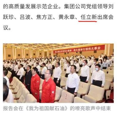 在《京城專場!中國石油長慶油田專題報告會》三天前的這個會議上,任總也已黨組成員身份出現了。