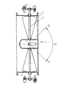進口葉片調節控制裝置是用鋼板焊接制成,所有的葉片都制作成在葉片主軸周圍旋轉90°以便調整來自風扇的空氣流動率。進口葉片調節控制裝置的結構如圖6所示。