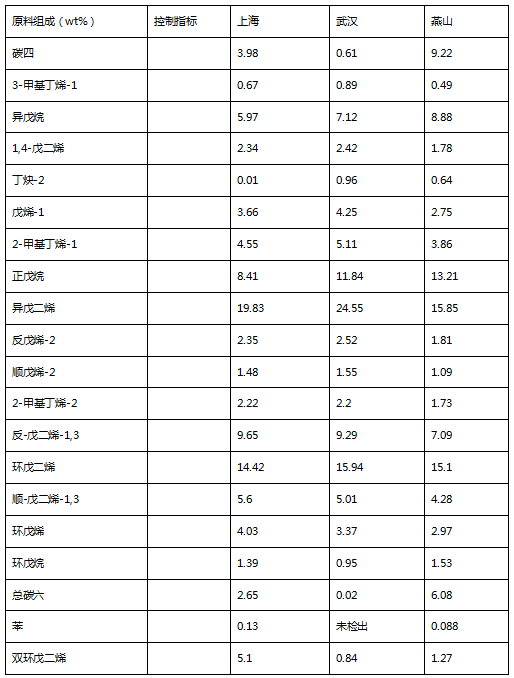 從三套碳五分離裝置原料組成分析,燕山石化碳五分離裝置原料品質較差,輕組分、重組分偏高,而主要組分異戊二烯含量偏低,這將增加裝置運營成本。