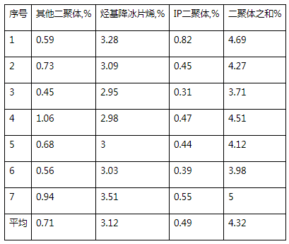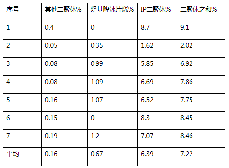 2、在二聚反應器出口分析指標上增加下限值進行調整,既保證萃取干擾因素環戊二烯合格,又確保二聚反應器環戊二烯濃度在一定范圍內,減少異戊二烯二聚體的生成,提高異戊二烯回收率。