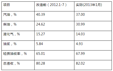 從產品分布來看,改造后輕質油收率和總液收都比改造前有所增加,特別是柴油收率有明顯的增加。
