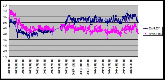 催化裂化裝置的長周期運行事關整個煉廠運行的大局,有著牽一發而動全身的重要地位,只有實現催化裂化裝置的長周期運行才能實現整個煉油廠的長周期運行。通過3年的技術攻關,格爾木煉油廠催化裂化裝置在實現裝置長周期運行方面取得了長足的進步。制約裝置長周期運行的原料油性質不穩定,油氣在提升管內停留時間過長,油漿系統易結焦這些問題已經得到了有效的改善。2014年催化裝置實現了自2012年以來的第二個2年一修目標,在今后的共組中我們將致力于催化裂化裝置的長周期運行,在裝置兩年一修的基礎上努力實現三年一修,向煉油先進水平不斷邁進。