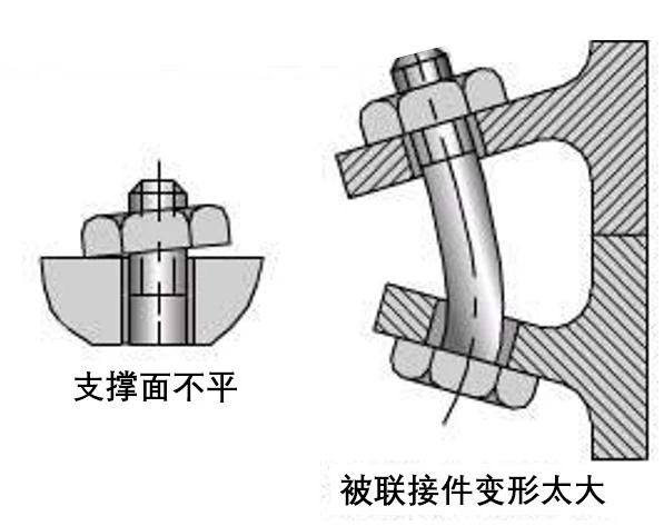由于設(shè)計、制造或安裝上的疏忽,有可能使螺栓受到附加彎曲應(yīng)力(圖 2), 這對螺栓疲勞強度的影響很大,應(yīng)設(shè)法避免。