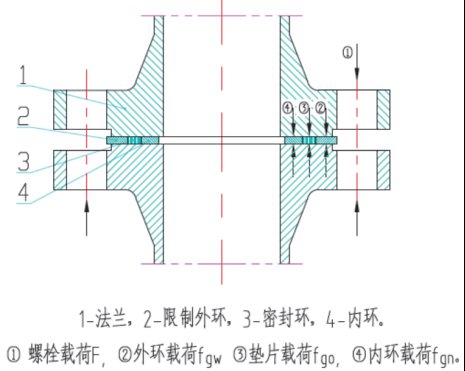 繼續增加載荷 | 金屬和石墨相比,其可壓縮性可以忽略不計,此時石墨上的σgi恒定不變,而額外的螺栓載荷可認為全部作用在金屬限制環上,此額外載荷ΔF會在金屬環上產生②外環載荷fgw和④內環載荷fgn |