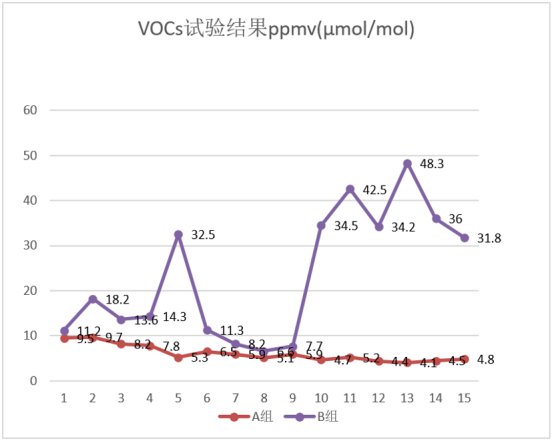 圖8 VOCs試驗數據(A組+B組)